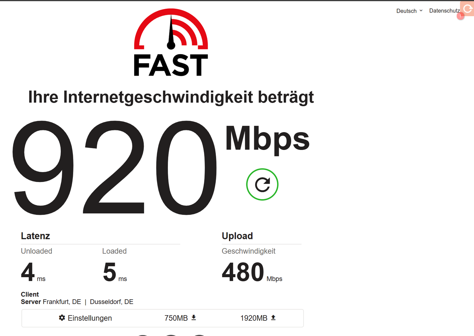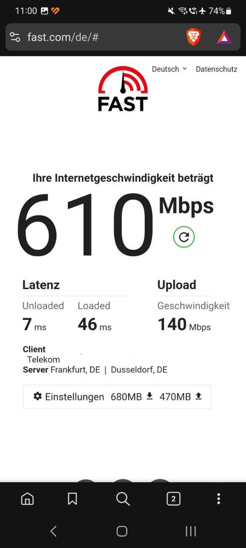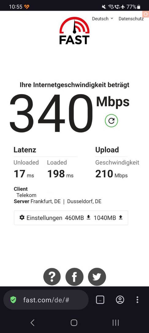 Telekom Fiber 1000/500 via WLAN Samsung S20