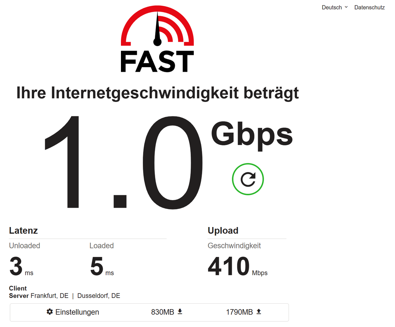Test sites speed.cloudflare.com and fast.com.